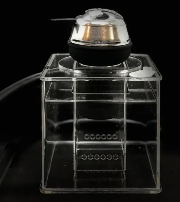 Этот кальян - аналог привычного Hookah Box, но с некоторыми улучшениями. Например, клапан в этой модели сделан из силикона. Он расположен так, чтобы исключить "залипание" клапана при контакте с водой. Также у корпуса теперь только один склеенный шов, а остальные углы бесшовные. Это исключает возможность протекания оргстекла.